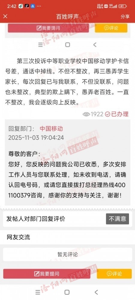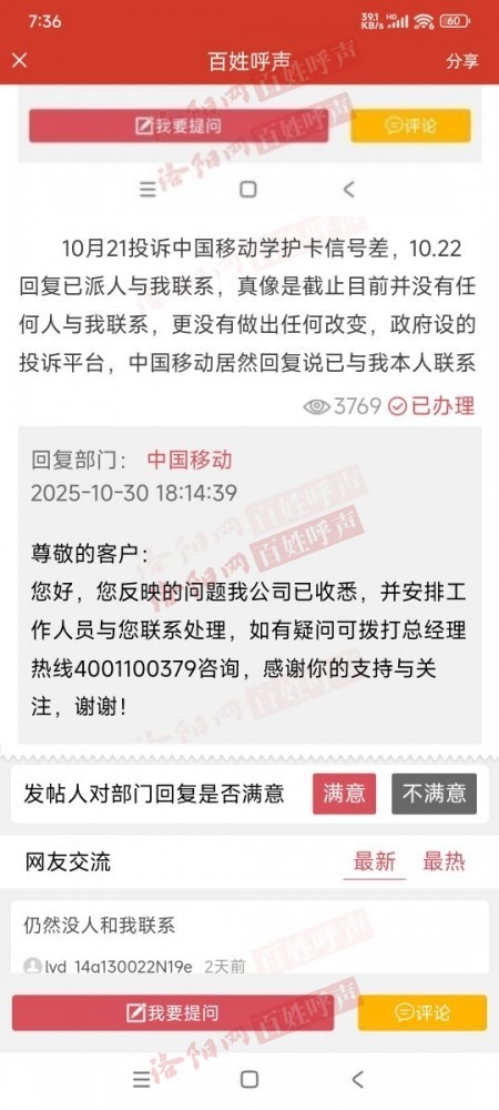 第三次投诉中国移动学护卡,一直欺上瞒下