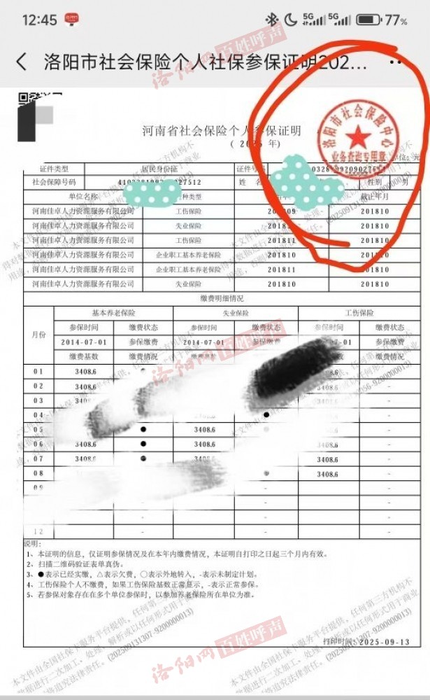 今天去涧西区住房公积金大厦房管局 提交绿洲花园南区公租房复审资料,其中一项是社保缴存6个月证明 我在支付宝上市民中心豫事办上下载的证明,自带公章是洛阳市社会保险中心的章,工作人员说不行必须要涧西区社会保险中心的章? 我就纳闷了 洛阳市大还是涧西区大 那个权威!上着班跑一趟又一趟! 请问一下相关部门领导 洛阳市的章不认吗?还是只认涧西区的? 推出豫事办是干什么的?就是为了减少市民办事来回麻烦来回频繁跑问题!我真是服了!