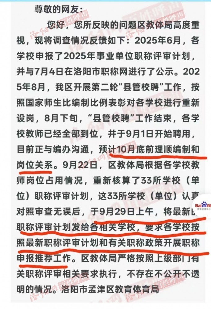 针对孟津区教体局敷衍答复,再问孟津区教体局