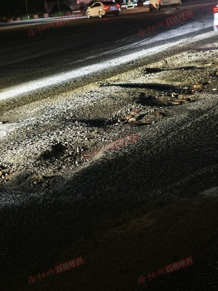 地址就在241国道与八官线北,(中石化加油站北30米),路上大大小小的坑好多,我就是其中的受害者,10.3号晚上7点钟我由北向南,下着雨还有半挂车开远光灯导致我视线模糊看不清路,不小心开进去了导致换了轮胎,轮毂都搞变形了,旁边修车店老板说这条路已经半年没处理过,我是第四个从那里倒霉的,望有关部门及时处理把路及时修好,下图是我拍的路上坑的照片