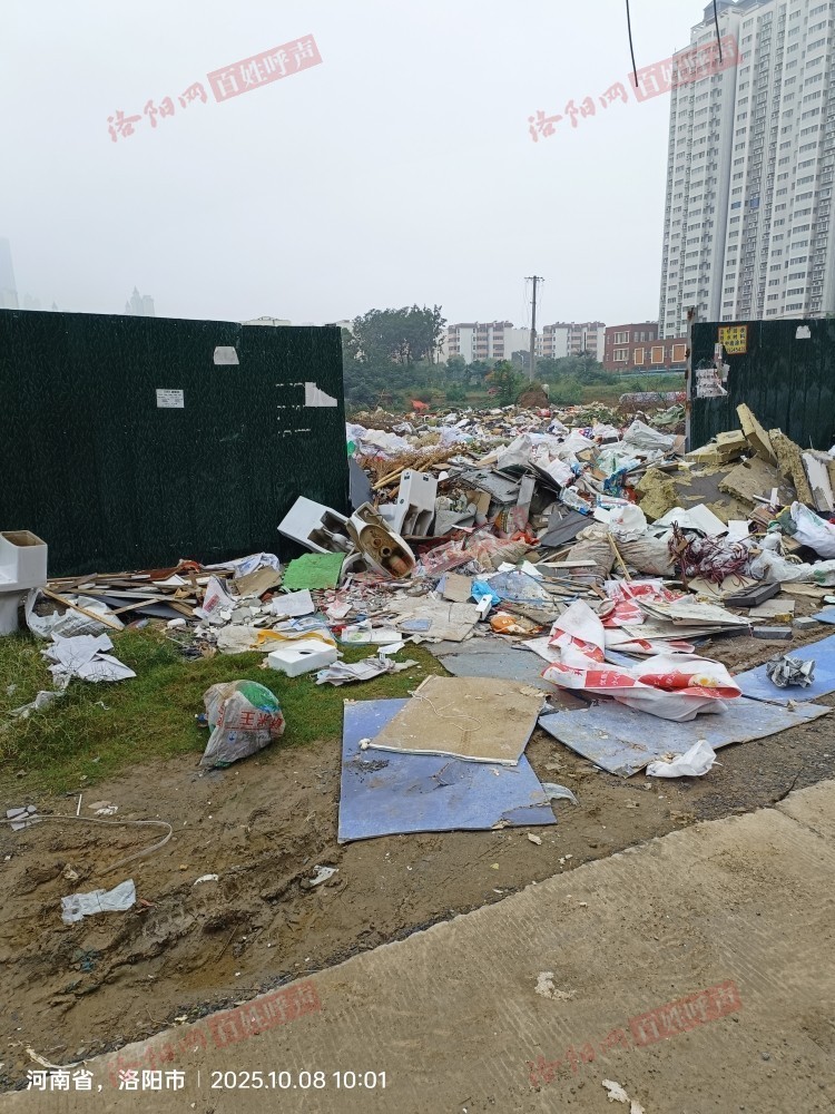 洛阳市瀍河区史家湾,中州府西门口垃圾成堆。