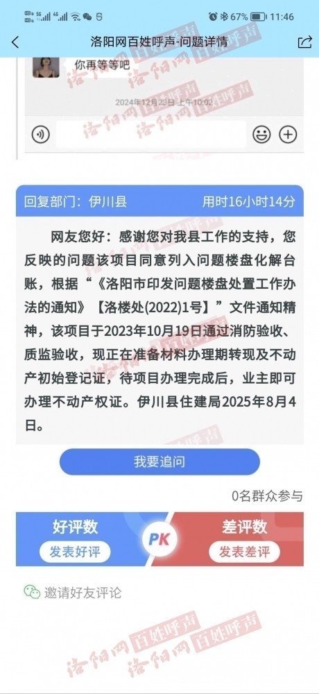 网友您好:感谢您对我县工作的支持和关心,您反映的问题已交住建局、自然资源局调查落实,我们督促相关单位尽快答复!2025年10月11日
