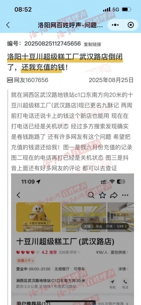 洛阳涧西区武汉路地铁站c1口的九酥记(原十豆川超级糕工厂)疑似卷钱跑路,大门紧闭,之前充值的钱现在无法使用,就算到河科大西苑校区门口的九酥记店也不能使用。