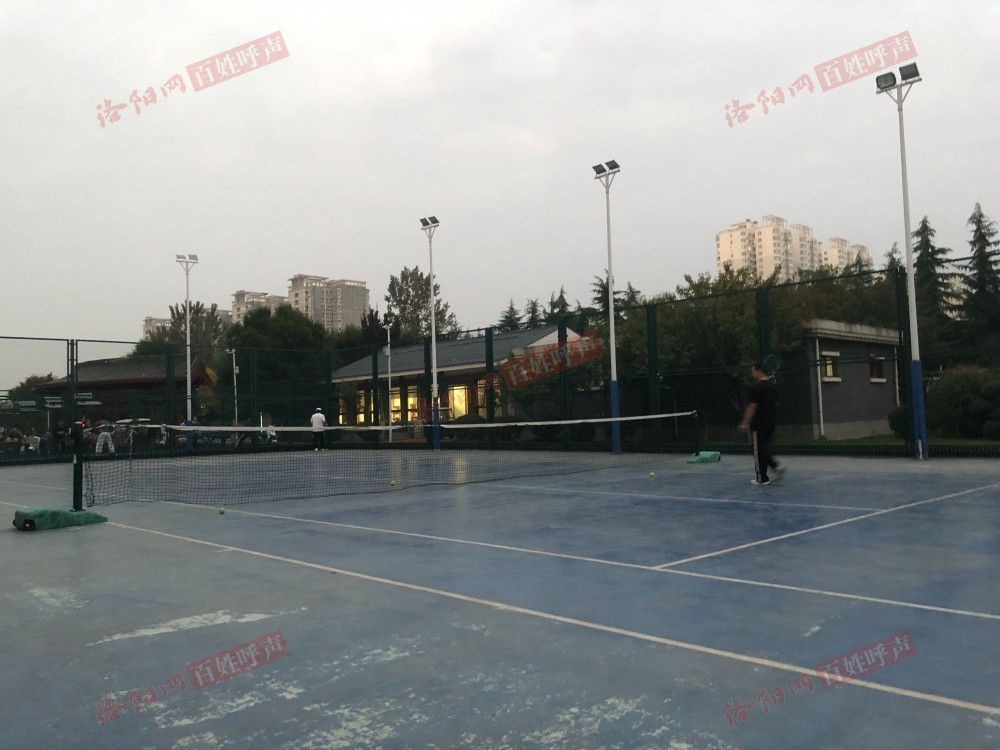 政康苑体育公园网球场灯亮得太晚了,希望下午6点开灯。图为6点的球场