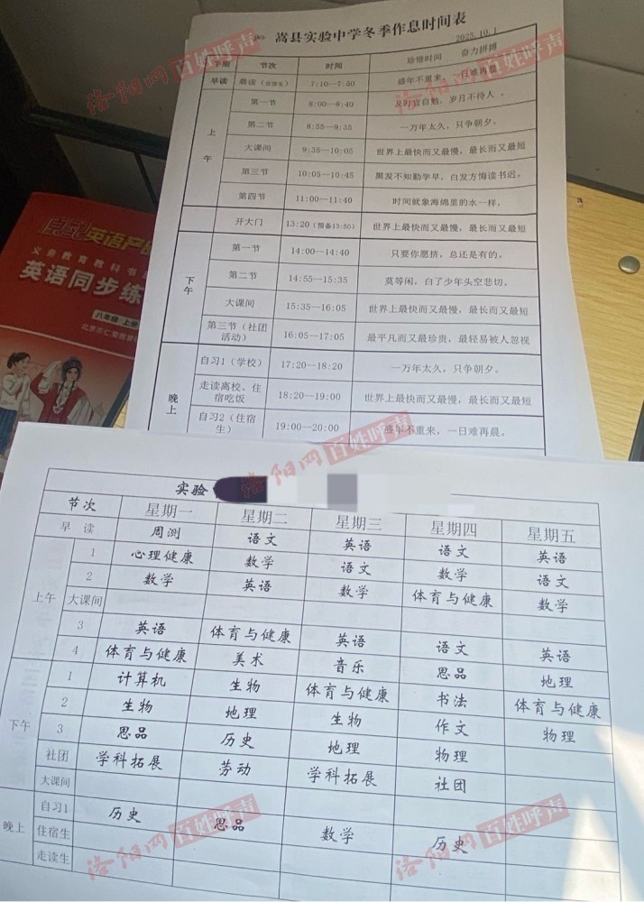 只改个课程表不落实 你改这让谁看 让学生们开心两天却发现还是原来的时间 还是说领导来了让领导看看 看你们改革的多好 你们既然弄了就要落实 不要弄这个只为了让领导看 那真没意思就为了应付检查 我希望相关部门能尽快处理此事