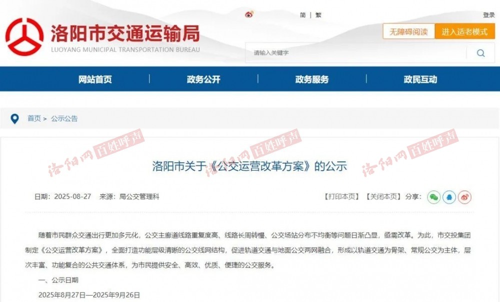 2025年8月27日发布的洛阳市关于《公交运营改革方案》的公示什么时候能实行