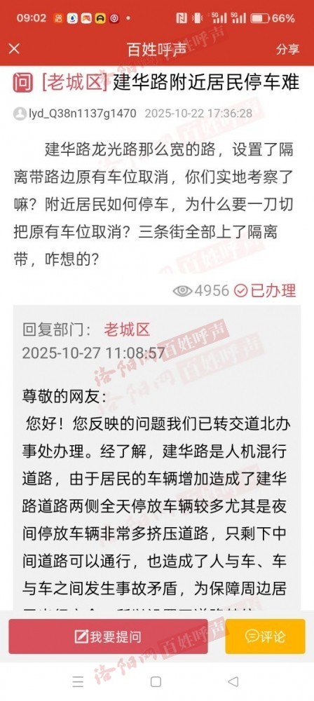 编号:20251028090758678建华路龙光路附近居民停车难