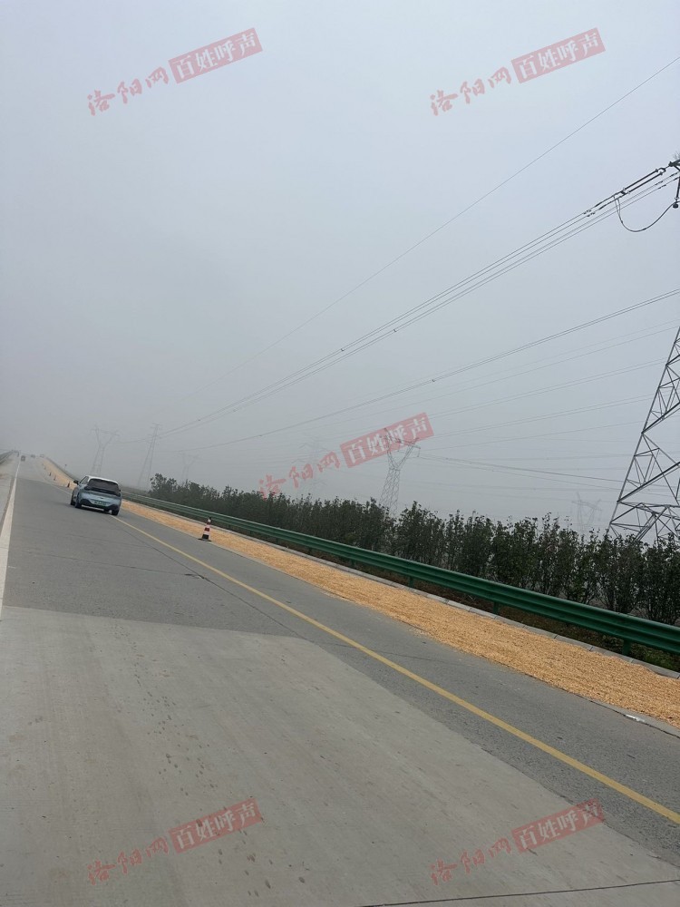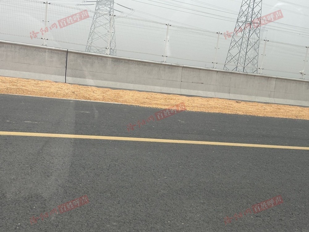 偃师东高速口,过去一段,这是新修的高架路,旁边是正在施工的沁伊高速,从牙庄村到马洼村,这一段有人在恶意侵占公共道路,道路两册晒粮食,至使四车道变成两车道,行驶困难,更重要过往车辆的安全问题没法保证,没有任何部门制止,希望有关部门严查,并且在此高架桥上树立禁止晒粮食的牌子