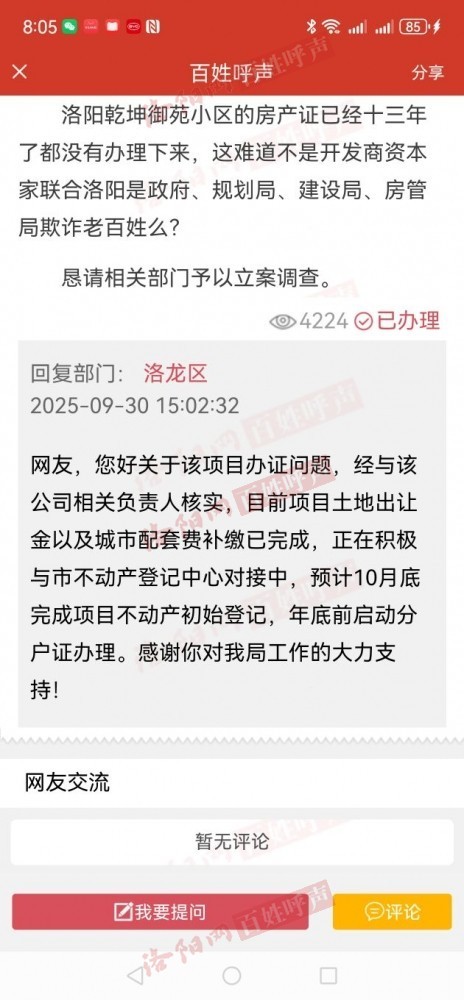 编号:20251029080801229乾坤御苑不动产登记到哪一步了,上次说十月底完成大证
