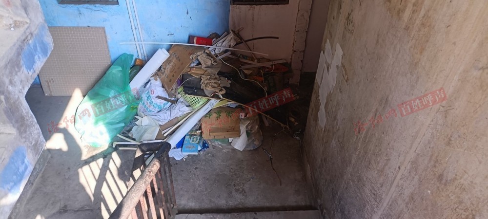 郑州路三乐巷垃圾遍地污水横流杂草丛生长达半年无人治,二楼楼梯道堵塞消防隐患巨大!
