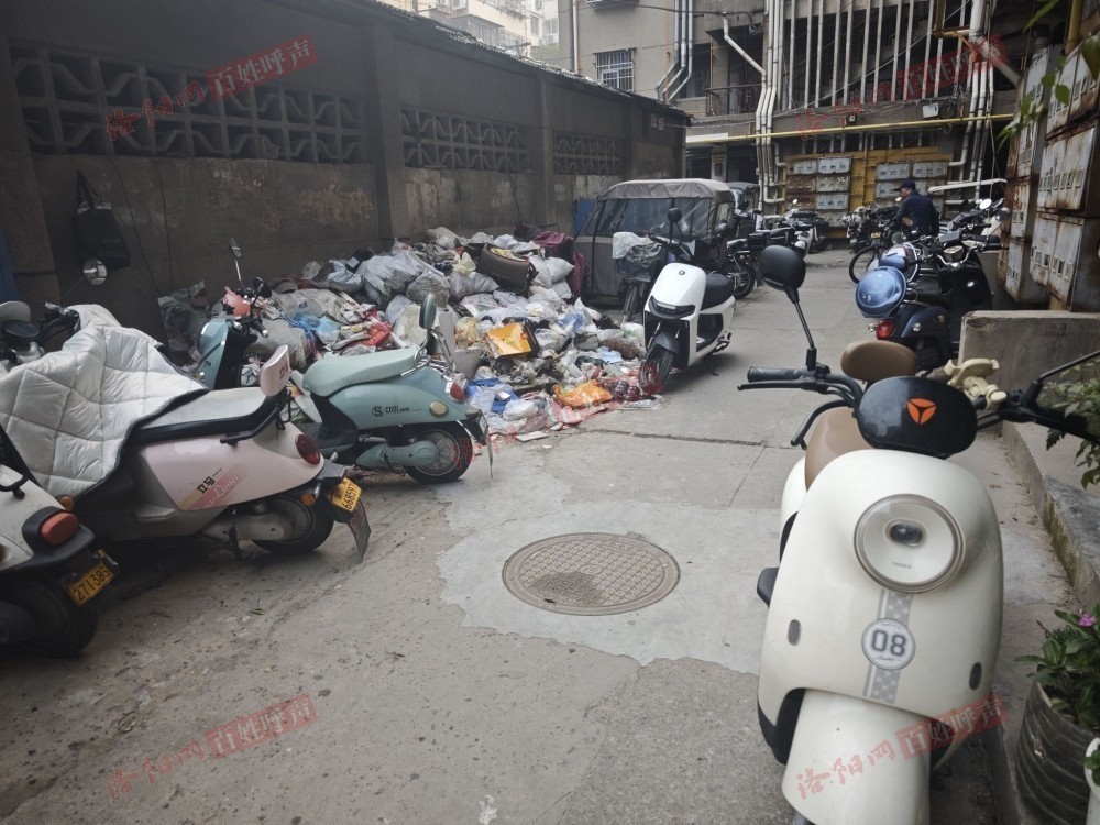 涧西区一拖九号街坊七栋楼前面多处堆放建筑垃圾,和废旧车辆不及时清理,晚上电动车随意堆放,严重影响居民通行和消防安全,建筑垃圾堆放无人清理形成破窗效应,现在许多垃圾都随意扔在那里,请相关部门关注及时清理。