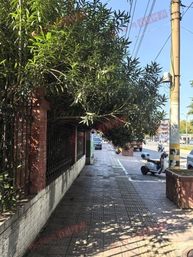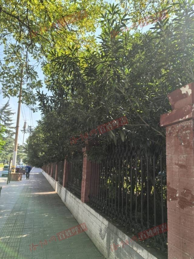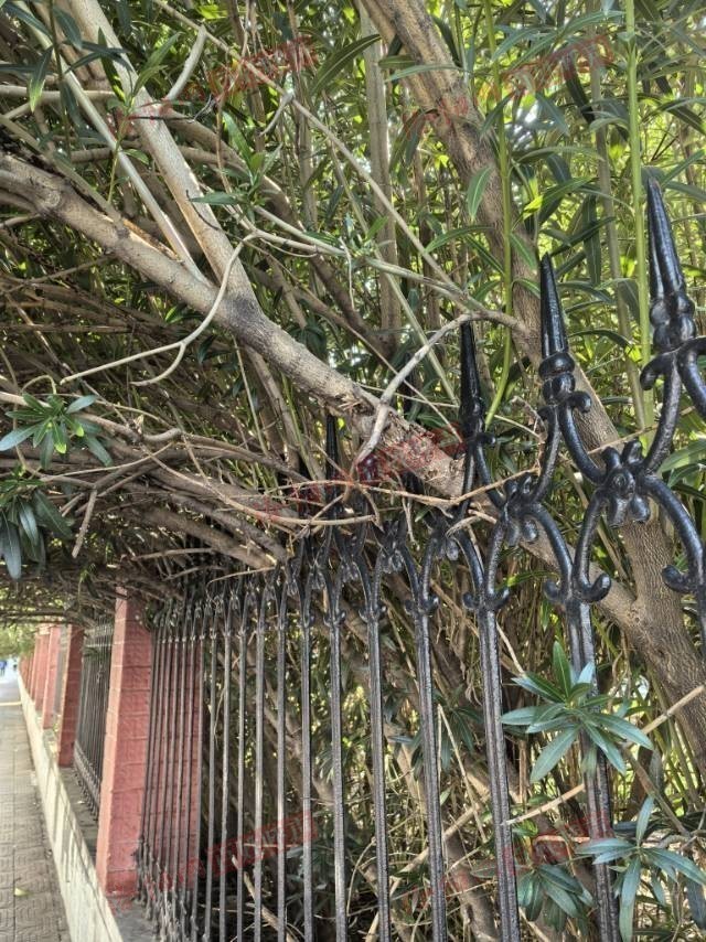 在涧西区10号(北院)街坊北边靠中州西路南边人行道有近70步距离的长度(附照片),从街坊内种植的夹竹桃树透过铁栅栏大量申长到了人行道上方近人高,沿路东西长约70步,遇雨雪大风天气恐压到栅栏(铸铁)砸伤路人。时间越长,树越长越大也越重,压垮栅栏的几率也越大,越危险。管理责任单位应该是该街坊物业和涧西区城管局。