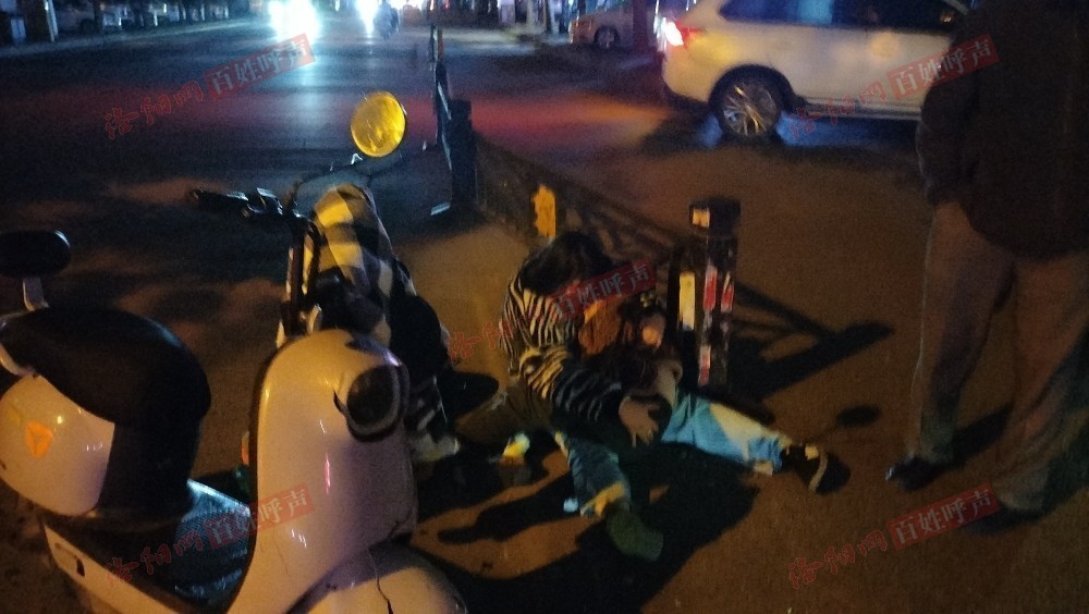 2025年10月9日夜,家人骑电动车途经涧西区嵩山路时由南向北撞上路边护栏,此路段护栏无安全警示标识,路灯黑暗,摆放不到位,造成妻子与孩子严重受伤。