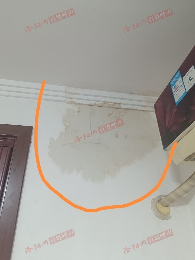 蓬莱A区老旧小区改造后屋面漏水,无人处理。近日连续降雨已造成渗漏后墙皮脱落,屋面石膏线开裂。