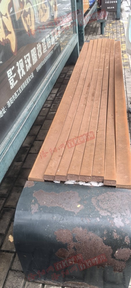 洛邑古城过街天桥北侧公交站长凳坏掉好久了没有人修理或者更换,国庆节来了,外地游客也多了。有点影响城市形象。建议更换或者修理