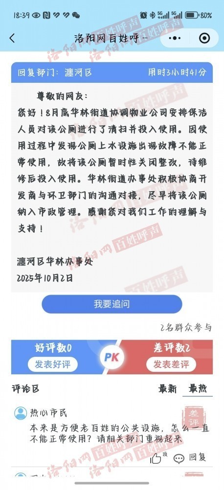 来回捣,上下骗,就是不办正事!瀍河区济钢贰号城邦配套公共卫生间到底正常使用了吗?瀍河区有关部门就是这样处理老百姓反映的问题吗?