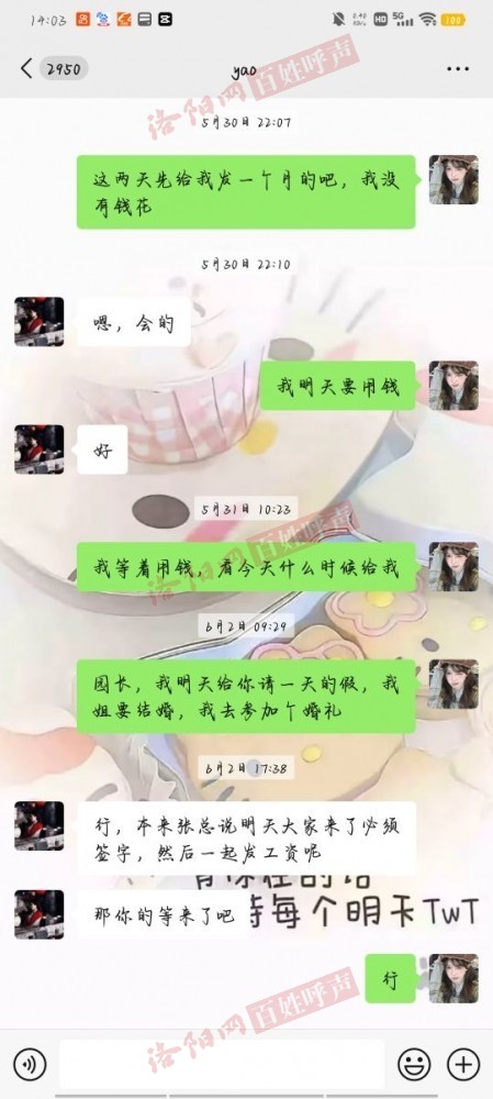河南省洛阳市孟津区河阳路世纪广场世纪阳光幼儿园园长欠我工资,我总共干了5个多月,就发了一个半月的工资,剩下5个月一直没给我发,每次都承诺说15号给我发,每次都没有按时发,我现在已经不干了,他工资到现在还没给我,我这几天去学校找他,他就躲着不见我,还不给我开门,不让我进去,看见我了也不给我开门,他就是这么当园长的吗