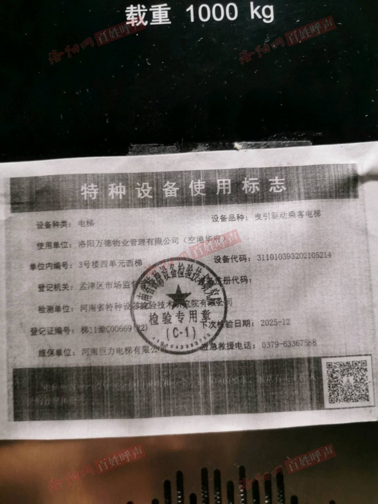 孟津区机场路空港华府小区。电梯紧急呼叫没有反应,怀疑维保单位做假
