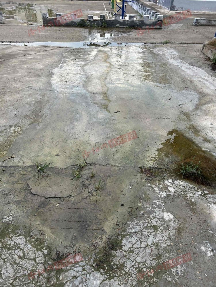 李家窑社区大院门口水管漏水几个月没人管,水流到路上和篮球场里,长了青苔,存在安全隐患,后附社区回复