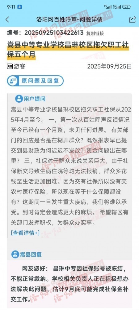 从2025年四月开始拖欠社保至今,,社保医保等一系列福利无法使用。此问题涉及群众切身利益,多次反应始终没有解决。