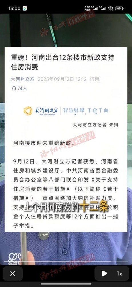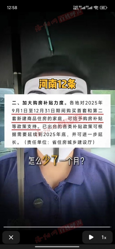 9月12日河南住建厅发布新12条公告明确写到9月1号至12月31号河南内购新房可以获得补贴,本人看到公告一周后选择购房,但是现在洛阳发布公告10月1号起,为什么不按河南省住建厅发布的时间执行?对于我这样响应政策买房的消费者应该负责!