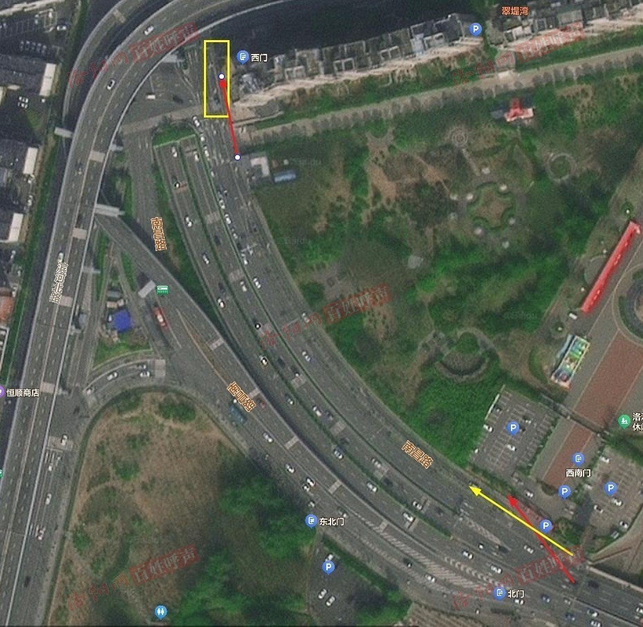 西苑桥南向北方向,为三车道。其中拟在滨河北路右转车辆需在洛浦公园门口处提前变道,因非机动车特别是晚高峰时期,通行量巨大,所以右转车辆等待时间很长,会占用西苑桥一个车道,而等待处左侧又是隧道分流处,所以导致隧道、地面辅道通行不便,能力大打折扣。但即使先行分离右转车辆后,到红绿灯路口处,依然会和非机动车在一起,车辆还是无法右转。这种分流从实际看没有起到应有效果,画个示意图,黄色为非机动车,红色为机动车...