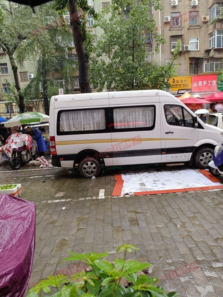 太原路和山东路交叉口向东30米 大型客车停了几个月 压盲线 非法改装 无牌照 阻挡门面 希望有关部门清理