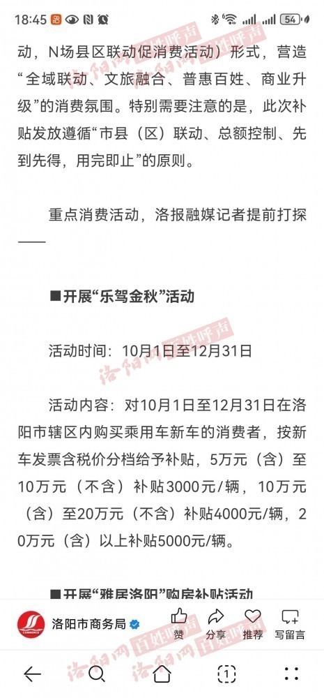 咨询洛阳市商务局9月30日发布的乐驾金秋购车补贴,什么时间开始通过什么通道进行申领?购车日期范围是什么时候?需要提交哪些资料?