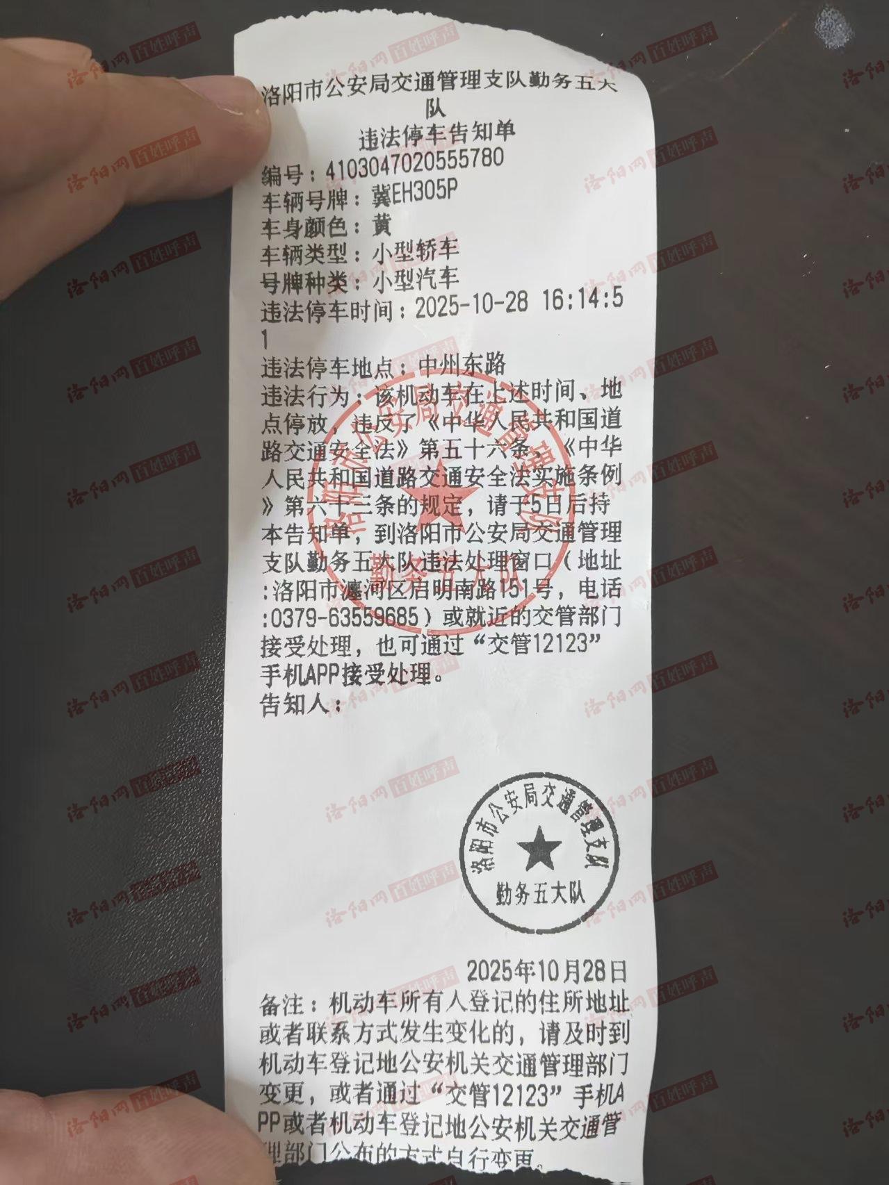 我是一名来自河北的游客,此次专程前来领略洛阳的古都风采,这座城市的历史底蕴与人文温度让我深感震撼。但今天一段意外的违停插曲,让我既焦急又困惑,特向您如实反映,恳请予以核查处理。 10月28日16:00左右,我将冀EH305P车牌号的车辆临时停靠在中州东路西门子助听器门店附近,当时未见禁停标识且看本地车辆放置一排,误认为此处可临停,因处理事务停留约15分钟。返回时恰逢执勤交警刚张贴完违法停车告知单,因收到驶离短信...