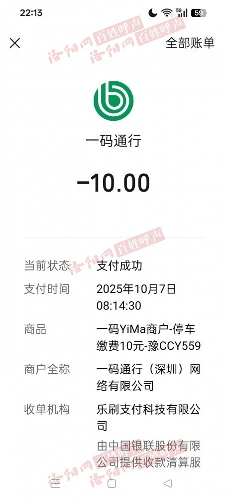 早上8:42收到一个洛阳城市停车的收费提醒说一直没有出停车场,提示说我7:54入场,实际没有入场,这期间我正在开车上班路上,然后我就打他们的客服询问什么情况,客服电话始终没有人接,我的APP上查不出来车在哪个地方停车,搞不清楚现在是车被套牌了还是咋,异常收费情况也不知道怎么删除