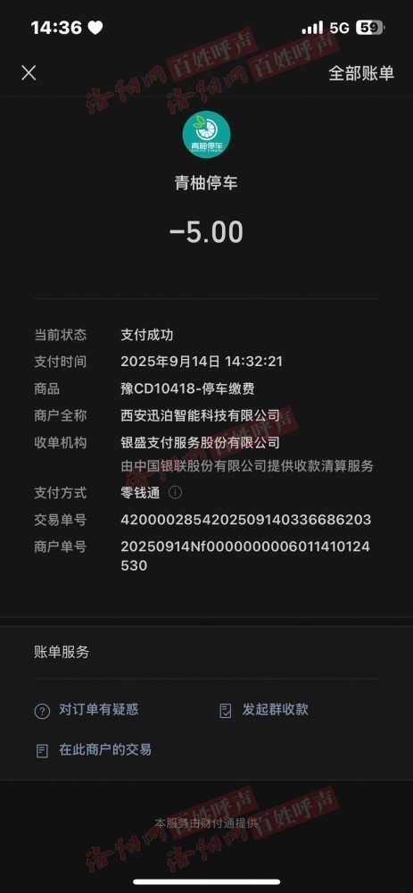 西工小街路口西北处有停车场乱收费新能源停了一个小时多点收了5块 显示青柚停车