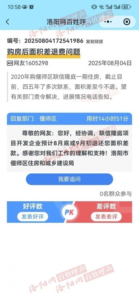 睁眼说瞎话,请问回复部门,什么时候联系诉求人了,对于房屋腾退和拖欠的租金,答复什么了?/涧西区住房保障和房产服务中心,这个部门,有认真对待百姓呼声吗?就这样敷衍和欺骗百姓的。