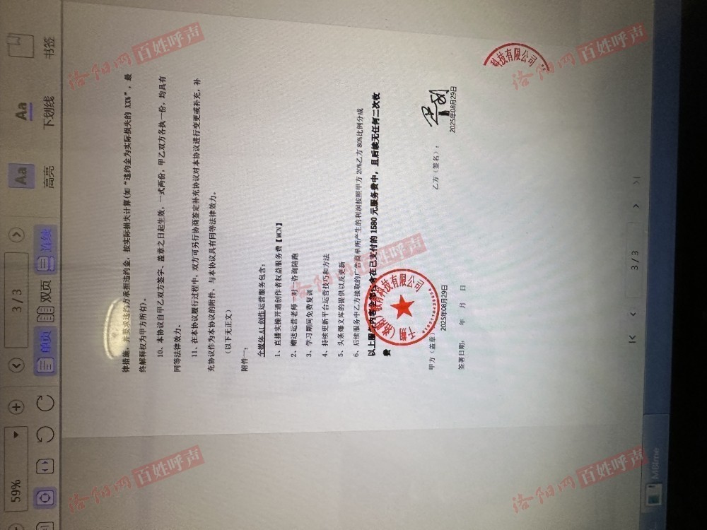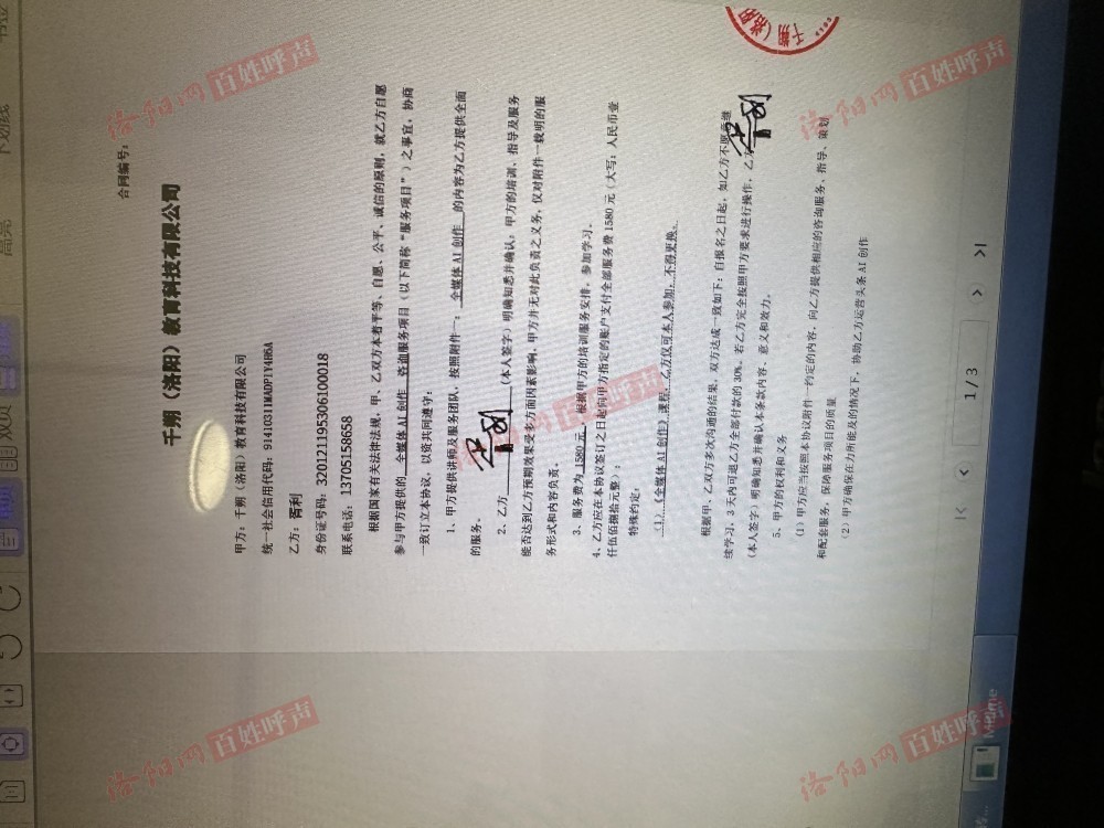 投诉千朔(洛阳)教育科技有限公司无证违法举办 全媒体AI创作培训班,合同违约,并欺骗收取授权运营服务费不退还! 我是2025年8月24号在网上报名参加了千朔(洛阳)教育科技有限公司举办的全媒体AI创作授权运营免费课程的。上了4天课后(8月28号)授课老师就诱导我们要支付1580元加入高级班,并承诺以下6个内容条款:1、直播实操开通创作者权益服务费[MCN]; 2、赠送运营老师一对一咨询陪跑; 3、学习期间免费复训; 4、持续更新...