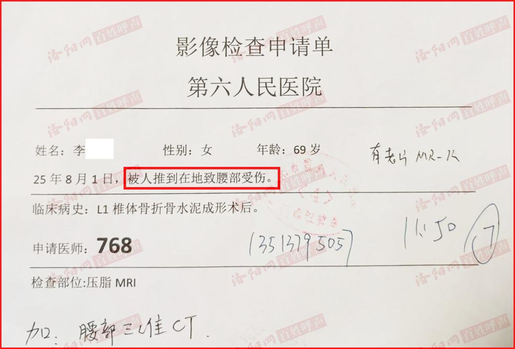 但洛阳市公安局物证鉴定所的法医却滥用职权,不依法认定该伤情、不出具鉴定报告,他们故意刁难我母亲,先是要求我母亲做“腰部三维CT”(见附件图片三),而在我母亲做完该项检查后,他们还是不出具鉴定报告,又要求我母亲再做什么“骨密度”……