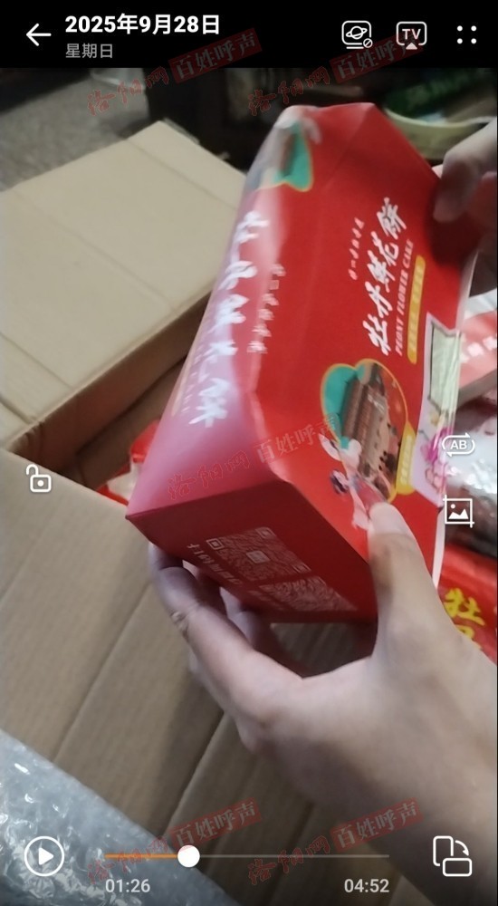 投诉人于9月26日在实体店 河南省洛阳市老城区东大街212号好一朵牡丹花洛阳特产店,买了一箱洛阳特产,付款218元,店铺人员现场包装商品并包邮,9月28日通过中通快递收到商品,拿回家拆开后(录了开箱视频)发现整箱商品都被压瘪褶皱破碎,里面只有一层泡沫垫。联系商家,商家回应态度差,把问题甩锅给快递平台。商家不认真处理,想拖时间偷懒等快递公司,商家还把内部群聊天的截图发给我,结果忘了打码嘲讽我的字,他们嘲讽我“碰瓷”(如图2)这就是他们的态度,浪费我的时间和心情。