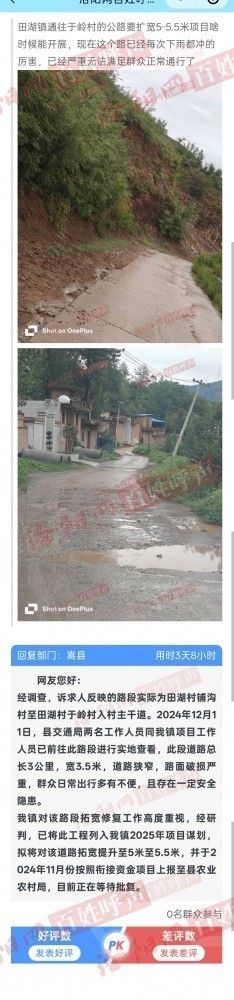 嵩县 主干道 农村 农业 网友 损坏 反馈 批复 隐藏 告知