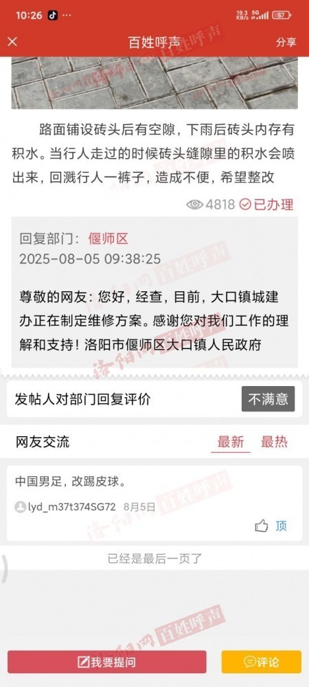 回复部门:偃师区 2025-10-05 15:01:40
