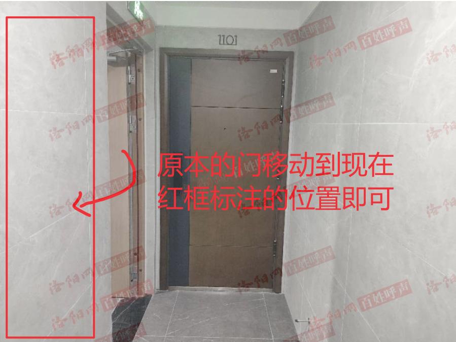 11号楼1单元的03户门口和11号楼2单元的01户门口紧挨着公共走廊(消防通道),由于距离过近,开门就会影响到通道过人。门开启后,消防通道最小宽度不到50厘米。如果发生火灾等意外,从该出口疏散时,很可能会造成里面的人想开门开不开,外面的人要逃生过不去。如果发生重大事故,请问谁来负这个责任?并且,走廊如此之小,日常生活中,开关门都会压缩走廊空间,如果有老人小孩从门口过,被开门撞倒了,这个责任如何划分?根据《住宅项目规范》GB55038-2025,走廊净宽不应小于 1.20m,净高不应低于 2.20m;向外开启的户门不应妨碍公共交通及相邻户门开启。” 本项目中外开的户门直接阻碍了作为生命线的公共疏散通道,完全违背了该条款旨在保障公共空间畅通无阻的立法本意。发生上述两类安全隐患,完全是因为11号楼此门设置时不按照设计要求设计建造所致。经过调查,此门具备整改的可行性,原本的走廊通往前室的子母门旁边的墙并不是承重墙,可以将1单元的子母门东移一个门的宽度,2单元的子母门西移一个门的宽度,这样设置后,此出口的上述两个问题都可解决。请政府严格要求开放商进行此处的整改,以免发生安全事故后后悔莫及。
