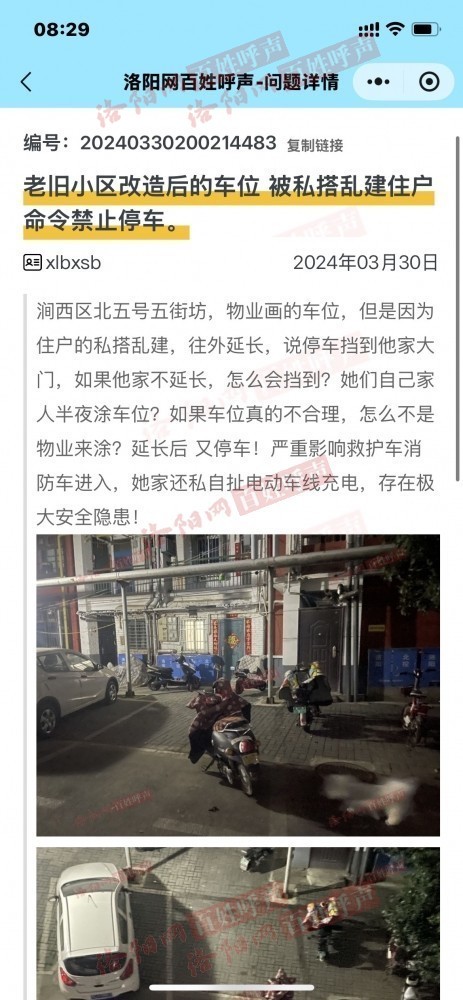 飞线 充电 消防 塑料 楼上住户 物业 涧西区 停车位 杂物 霸占