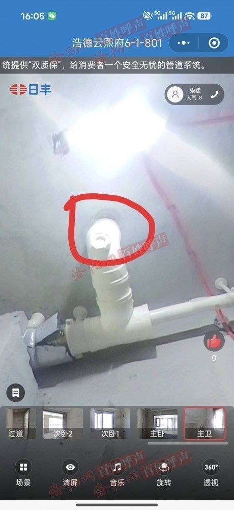 在装修过程中,发现房屋主卫楼顶水管处有渗水现象,联系开发商维保,其以楼上用户已装修等借口拒绝处理,也不到现场评估,拒绝履行相应责任与义务,请相关部门领导予以解决处理,谢谢。
