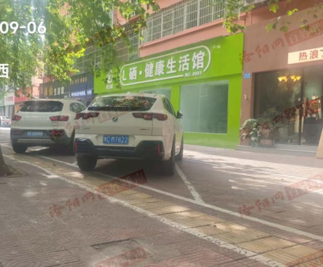 停车场 大队 压盲道 盲道 压盲 涧西区 黄河路 建在 停车 辽宁
