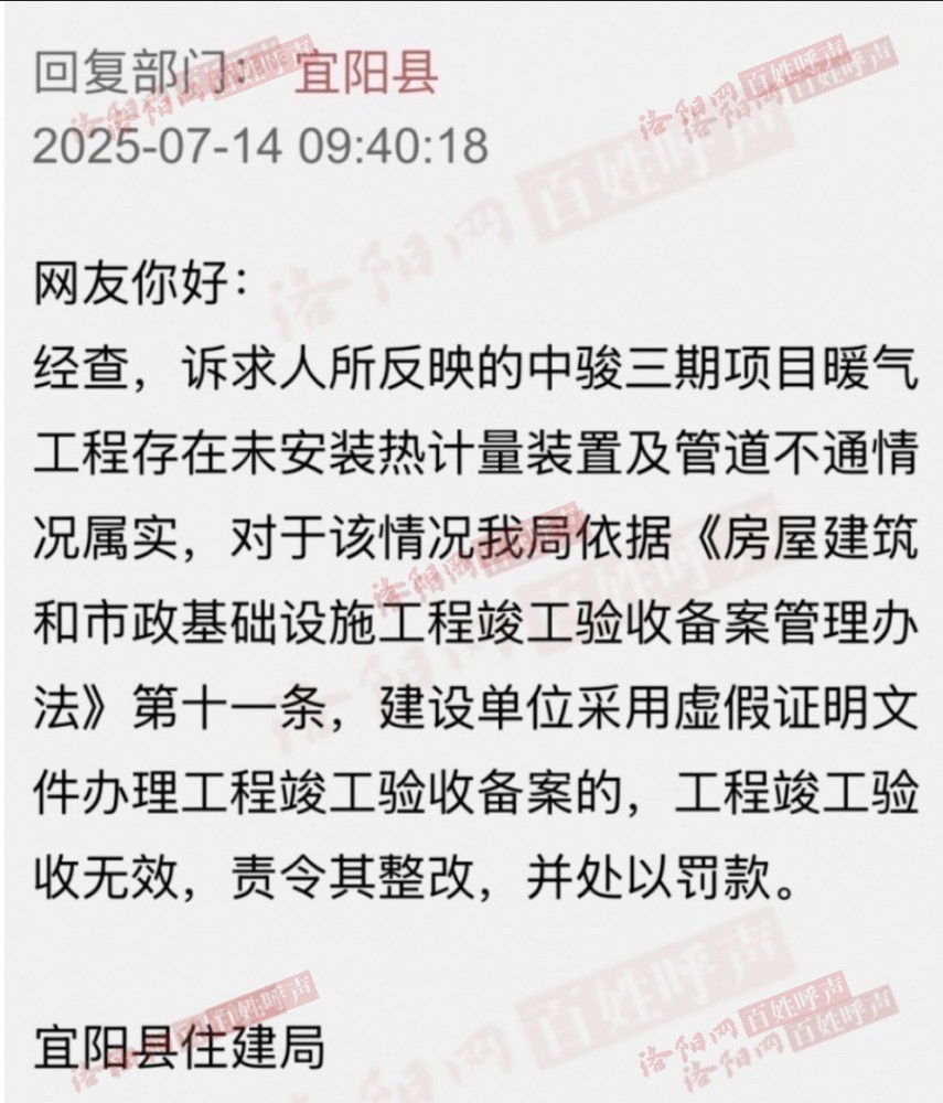暖气 项目 法人 售罄 验收 涉嫌 建设 费用 宜阳县 建局