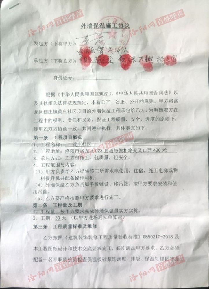 洛龙区 黄庄 庄镇 外墙 结清 工资 保温 社区 老板 只付