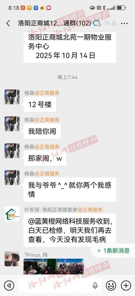 洛阳正商城北苑一期物业不作为,言语行为威胁业主,此前因为小区违建设施,导致通行受阻,有过因态度问题带来一二百人冲突局面,警察到场处理,物业未对该人员做出处理,并且此违建问题一直未解决,最近不到一周时间,小区电梯故障停了3天,楼前灯多天不亮,电动车堵住出行口,业主反馈问题,此人又多次群内言语威胁业主!态度极其恶劣!这样服务真的让人感到不安,居住体验感极差,恳请政府出面调察,并给予业主公开声明处理结果,提升业主居住体验!