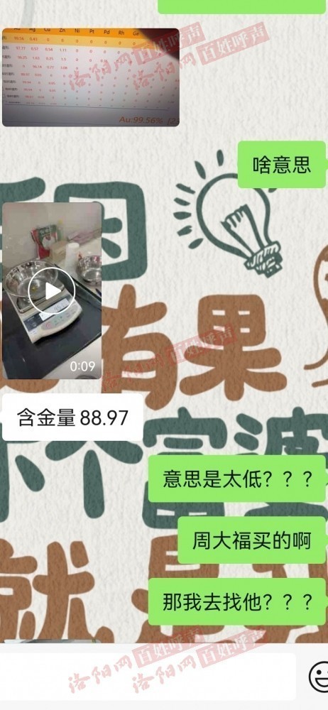 2020年9月20日在涧西王府井购物中心一楼周大福专柜购买的项链戒指手镯,千足金饰品,五年后被孩子拽断拿去以旧换新,才发现金子含量只有88%…这么大的品牌也这么不值得信任!!千万不要过分信赖品牌
