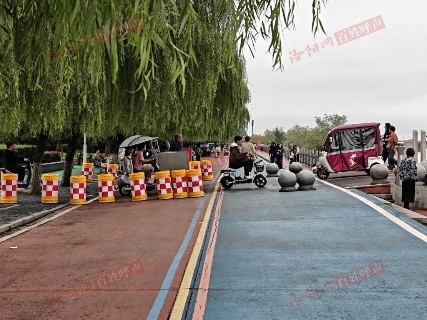 嵩县一桥到二桥之间人行乐道乱停乱放,从红桥可以直接骑车,甚至开车进公园闲逛,公园内电动车,三轮车,摩托车横行,人行道上开车飞快,乱停乱放,存在严重的安全问题,希望尽快解决