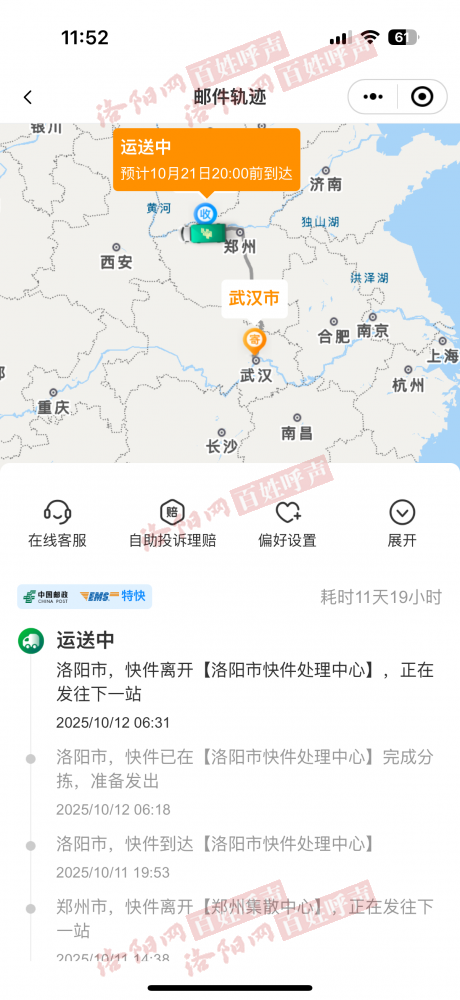 身份证丢失,着急要10月1日办理,告知最快方式邮政送到家,10月11日邮件快以到洛阳市,现在21号还没有送,快递在洛阳市10天都不发吗?办的时候是特块,为什么不送?