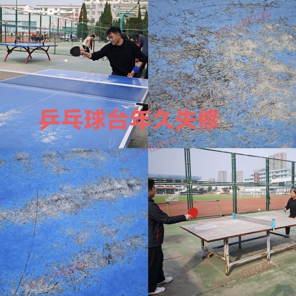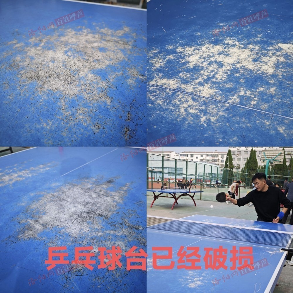 洛阳市最老的《老城体育场》乒乓球台已经使用多年,由于年久失修,现在破损严重,几乎不能打球。(体育场内共有八个台子,其中两个水泥台子)。这个体育场是老城和瀍河两区老百姓的主要活动场地,每天有数百人在此轮流锻炼身体。经常有不少外地工作回洛探亲者也来这里锻炼身体。由于球台的损坏直接影响到洛阳市文明城市的光辉形象,很多人都说老城体育场现在的活动器材还不如农村的好。建议上级有关领导引起重视,深入基层,了解民心,尽快对体育场的乒乓球台进行维修或者更换。