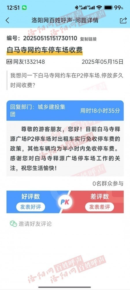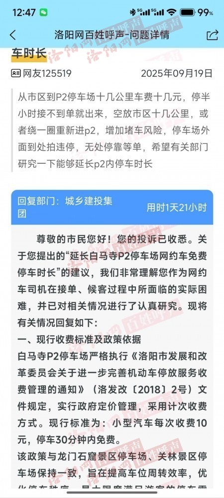 白马寺p2停车场超过15分钟就开始收费,合理吗,请问贵部门什么意思