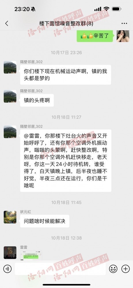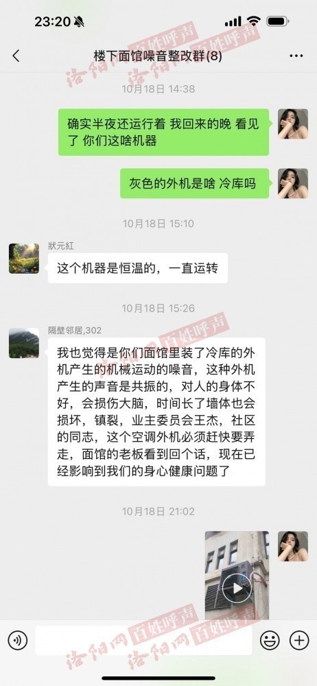 这家店从八月份周六周末违规装修,不听劝说,不了了之,业主熬到十月7日开业外边的空调机器噪音太强,八台空调外机加上私自建设冷库违规,导致墙体共振,业主无法休息,晚上拉桌子凳子声音频繁,多次和物业还有委员会沟通协商,店主同意整改,但是整改的不到位,仍有噪音,从十月以来多家业主去投诉,他们扔拖拖拉拉,每次群里说这个事情都是在深夜,有更多的聊天记录可提供给领导查看,希望有关部门严查,直接联系业主委员会,联系我们业主,把不合规的东西全部拆掉,还业主个安静的休息空间,我们这栋楼有年龄大的老人,还有有孕的妇女,都需要安静的空间,已经有老人去医院查身体,身体已经出现了毛病,本次投诉,均由多家业主共同参与,希望各部门领导重视,还我们个公道。